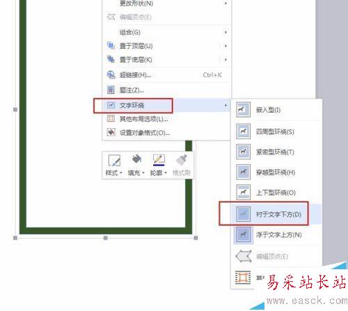 6、再次按右鍵選擇“文字環繞”中的“襯于文字下方”如圖所示