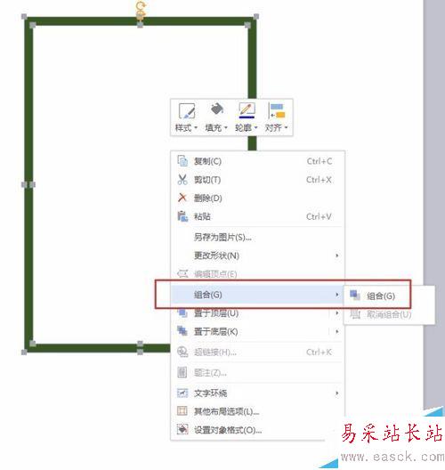 5、然后按右鍵,選擇“組合”中的“組合”,如圖所示