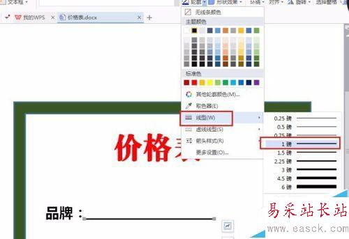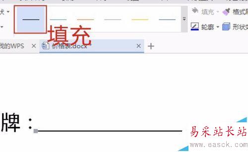 9、按住shift鍵不放畫直線,然后點擊上面的幾種顏色橫線給直線填充顏色,或者在輪廓填充,在選擇“線型”給直線調粗細,如圖所示