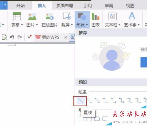 8、畫橫線,點擊插入-形狀-線條中的直線,如圖所示