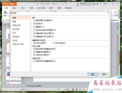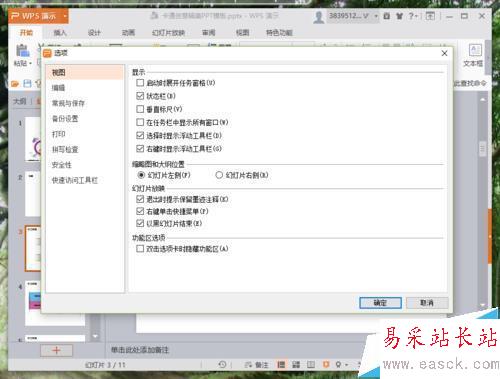 3、點擊選項命令選項 后,這個時候會打開Wps演示的“選項”對話框。如圖所示;