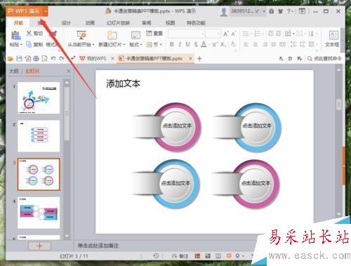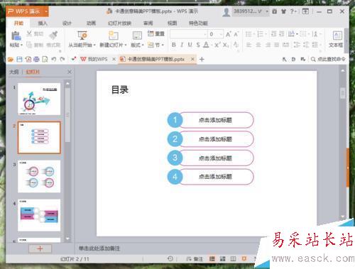 1、在計算機桌面的Wps演示圖標上雙擊鼠標左鍵,將其打開運行。在運行的Wps演示程序中,打開需要編輯或者修改的PPT文稿。如圖所示;
