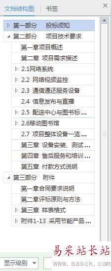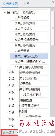 1、通過文檔結構圖下方的【顯示級別】可以設定文檔顯示的標題級別,比如我們選擇2,即可顯示2級目錄。