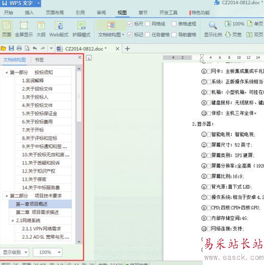 2、在文檔結構圖上任意點擊一個標題名稱,可快速切換到該標題,方便我們快速的查看該標題下的內容。