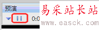 2、這時在本頁的左上角會出現下圖所示的窗口。其中小三角形表示下一張,左邊紅圈內按鈕為暫停按鈕,右邊紅圈內為“重新預演”按鈕。這里說一下它們的意思。中間的時間,在不停走,表示你想讓此頁顯示的時間長短,如果你這時有時想暫停,就按一下暫停按鈕,等你回來又按一下暫停按鈕,時間又開始走了。“重新預演”按鈕,是你想修改本頁顯示時間用的按鈕,按了它之后,時間又開始從新走了。當你將本頁預演完成后,單擊小三角就進入下一張的預演。這樣將所有頁預演完成即可。