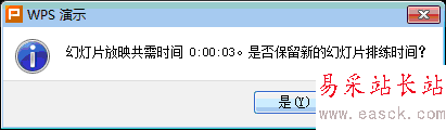 3、排練完最后一頁后,會自動彈出下列窗口。選擇“是”即可。