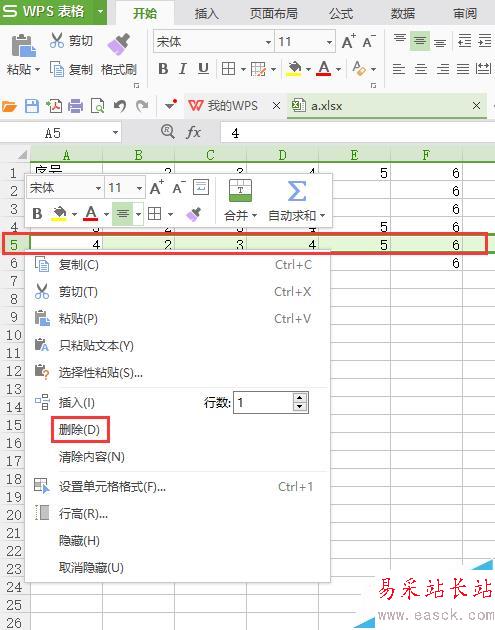 2、這時(shí)如果刪除第5行,序號(hào)那一列就不連續(xù)了