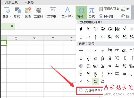 4、點擊符號選項,在其子級菜單里找到其他符號選項,如圖所示:
