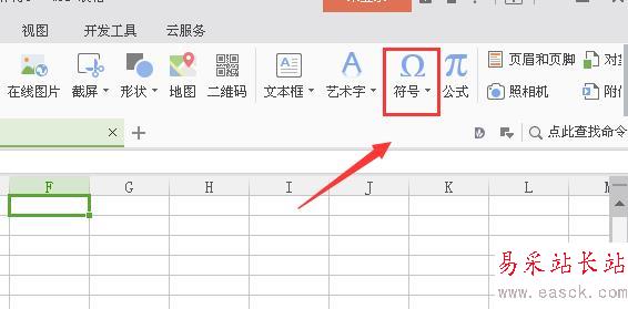 3、點擊插入在其工具區里找到符號選項,如圖所示: