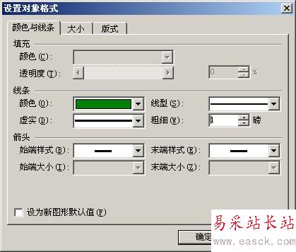 現在,我們看到帶有網格的頁面已經比較符合我們對信箋的要求了,但是由于網格只是輔助顯示的,雖然我們設置了網格,但實際打印出來的文檔仍然只是“白紙黑字”,并不會顯示這些“輔助線”。我們沒有辦法讓這些“網格”打印出來,但卻可以制作一些與網格相一致的直線。點擊“繪圖”工具欄上的“直線” 按鈕,照著第一條網格線的位置畫一條直線,雙擊此直線,彈出“設置對象格式”對話框(圖2-84)。