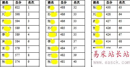 如上例,原始表格是在wps 2005的金山表格中制作的,而我們需要分成三欄進行打印。