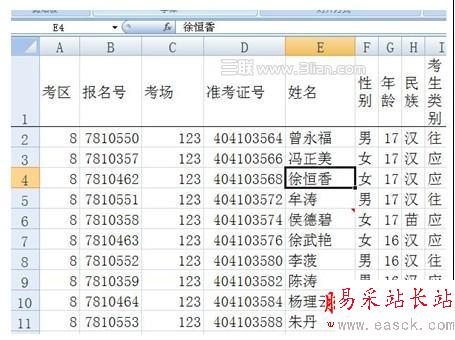 在Excel或金山電子表格中建立一個工作表,輸入每個學生的準考證號、姓名、考場號,或者直接調用縣招生辦下發的考生信息電子表格,將文件命名保存。(如圖2)