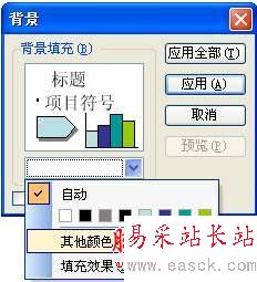 2、在幻燈片上單擊鼠標右鍵,在彈出菜單中單擊“背景”命令,彈出“背景”對話框,將幻燈片背景設為藍色(如圖3)。