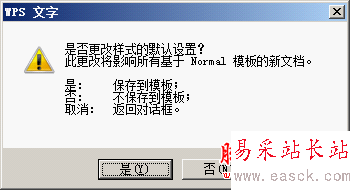 確定后返回到修改樣式對話框,勾選“同時保存到模板(A)”,在彈出的確認框(圖5)中選擇“是(Y)”。