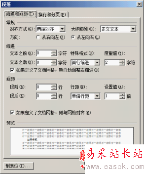 在“特殊格式”下拉列表中選擇中文常用的首行縮進2字符,根據個人使用習慣也可以調整其他選項,如行距、段前距等。