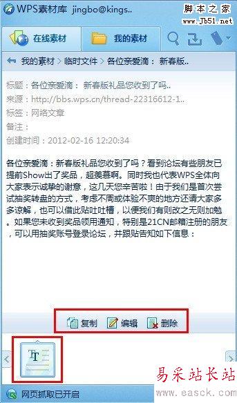 上網沖浪看到精彩文章想保存下來怎么辦?選中、復制、運行 WORD ,粘貼再整理格式?太啰嗦了。用 WPS Office 2012 文字工具,我們可以很輕松地將網頁內容保存到 WPS 的在線素材中,一鍵操作,非常方便。