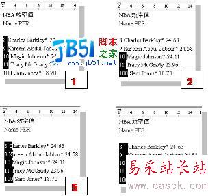 按下Alt鍵不放,將光標移到名單第一行的名次前,也就是喬丹的名次“1”前,從“1”開始向下選擇,一直選到“99”,放開Alt鍵,然后點鼠標右鍵,選擇“剪切”命令,名次就被刪掉了,如下圖所示。(直接用BankSpace鍵只能刪掉“99”一個數字)。至于瓊斯的名次“100”,我試過一起選它,但這樣會造成名次為單位數的球員姓名第一個字母也被選中,所以單獨選中它刪掉就行。