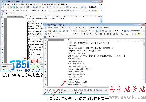 記住縱向選擇的要領:“Alt”鍵。不止是用來處理名單,在編輯由表格轉換來的文字時,縱向選擇也是個非常有用的功能。