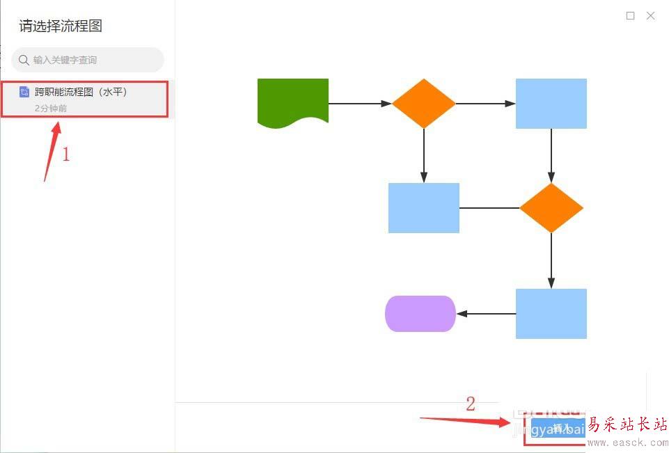 5、當您的賬戶存在流程圖時①同上述步驟2,從“應用中心”路徑進入“新建流程圖”界面。