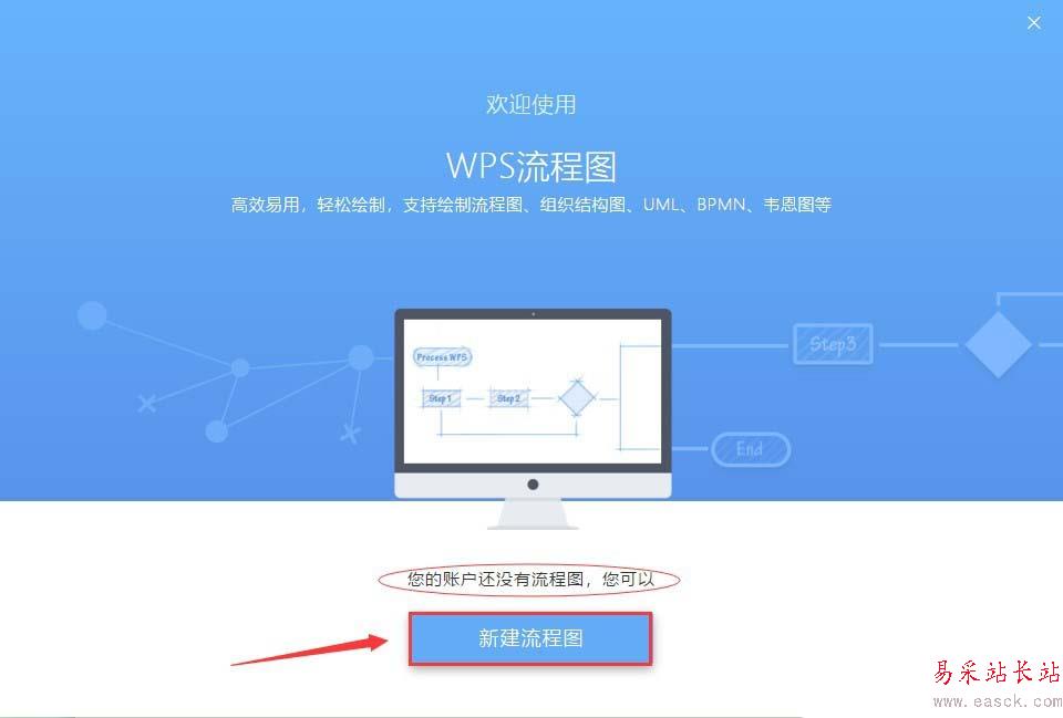 1、當您的賬戶沒有流程圖時,新建流程圖的方法有:在文檔菜單欄選擇“插入”→“流程圖”,在彈出的對話框點擊“新建”打開“新建流程圖”界面(如圖3所示)