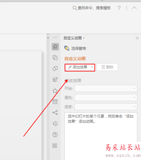4、在【自定義動畫】的菜單列表中單擊【添加效果】選項。