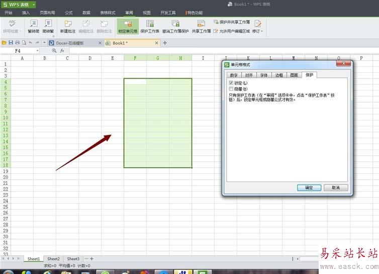 1、方法和對整個單元格鎖定是一樣的,我們只需要選中我們要鎖定的單元格,然后依照以上整個單元格的操作方法即可實現(xiàn)