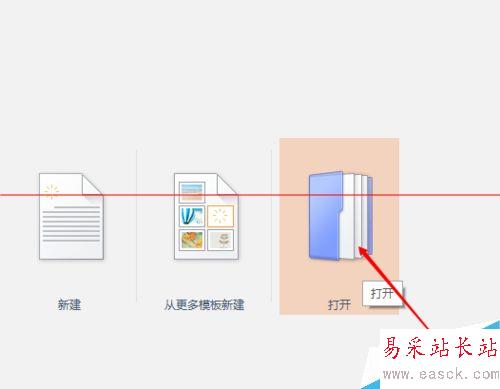 3、接下來出現“新建”“從更多模板新建”和“打開”,選擇打開。