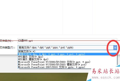 4、然后找到你要修改格式的PPT。在下面可以看到“文件類型”可選框; 點對勾就會出現格式類型選擇了,然后保存自己喜歡的格式類型。