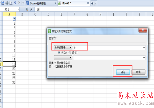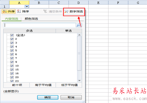 如果上面的設置功能滿足不了需要篩選的內容,可以點擊右邊“數字篩選”,