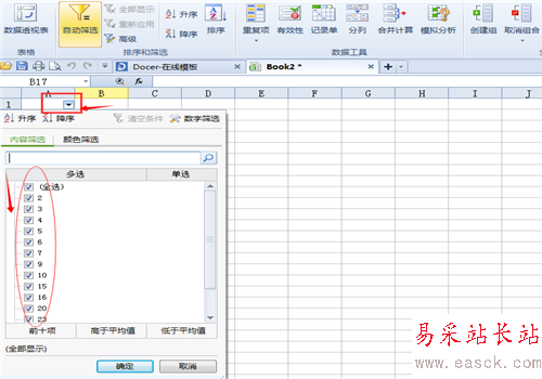 點擊數據欄,然后選擇自動篩選,整列的第一行會出現一個三角形,點擊三角形下拉,會看到一個對話框,點擊全部,下面可以直接點擊篩選,點擊高于評價值,低于平均值,等確認后就可以直接篩選出需要的內容。
