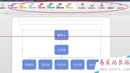 5、如果你對已建好的【組織結構圖】樣式,顏色不滿意時,你還可以進行調整,點擊【組織結構圖】-在功能區中選擇你要修改的內部,比如線條顏色等
