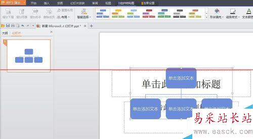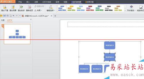 1、打開WPS,PPT文檔,【插入】-【組織結構圖】(基本的兩層關系)