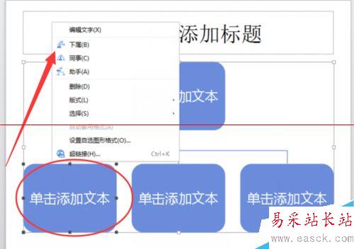 2)點擊【組織結構圖】中的【文本檔】四角會出現圓形叉-右擊【下屬】、同樣可以達到增加下屬的效果