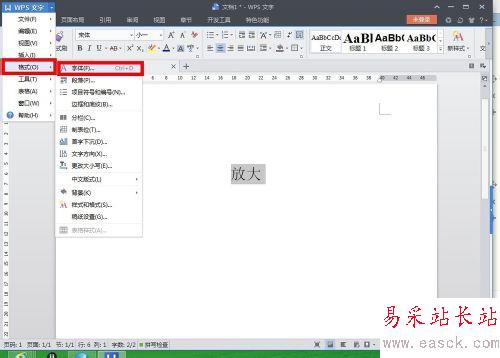2、然后,反復的點擊“增大字號”,幾次之后,選中的漢字字體就會變得很大,直到滿足你的要求。