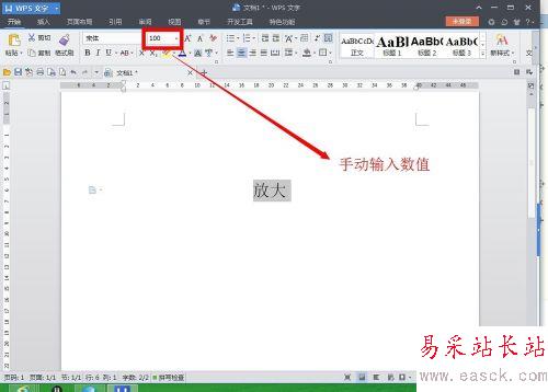 3、我們也可以選中需要放大的字體,在“字號里面”手動輸入我們需要將字體放大的數(shù)值,輸入后,在空白處點擊一下就可以了。