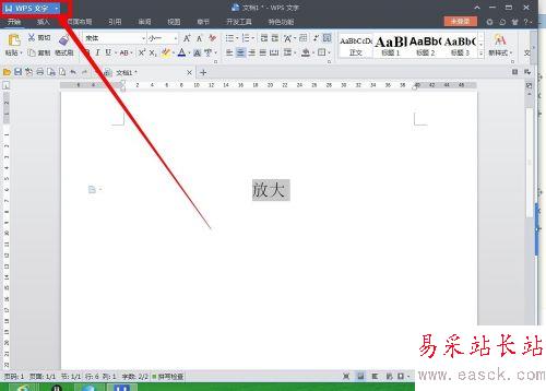 4、我們還可以選中需要放大的字體,然后在左上角“wps文字”處,點擊后面的折疊符號,展開菜單。