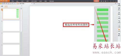 5、粘貼完成后,將粘貼產生的新形狀,依次拖動到原來形狀的下方,適當調整距離和位置。然后用鼠標框選住所有形狀圖形,接著在主菜單欄里找到“繪圖工具”菜單。