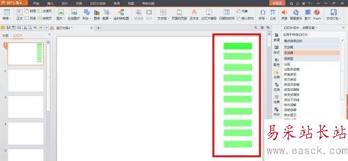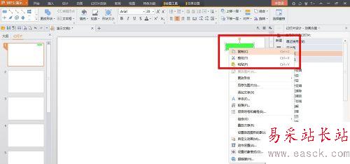 4、選中剛才設置好的形狀,然后在上面單擊鼠標右鍵,選擇“復制”,再單擊鼠標右鍵,選擇“粘貼”,連續粘貼直至粘貼數目,滿足你需要設置導航的幻燈片的個數(幻燈片數目較少時,可以將每一頁都設置導航,即粘貼數目等于你的幻燈片數目)