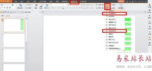 6、在繪圖工具下拉菜單中,找到“對齊”功能,點擊并展開,在其下拉菜單中,選擇“水平居中”,然后再次框選住所有形狀,再在“對齊”里面選擇“縱向分布”,操作完成后,所有的形狀圖形就排列很整齊了,距離也都一樣了。