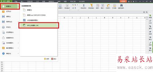 2、點(diǎn)擊WPS表格或WPS文字或WPS演示,選擇下拉菜單中的“新建”,再選擇展開(kāi)的“本機(jī)上的模版”。