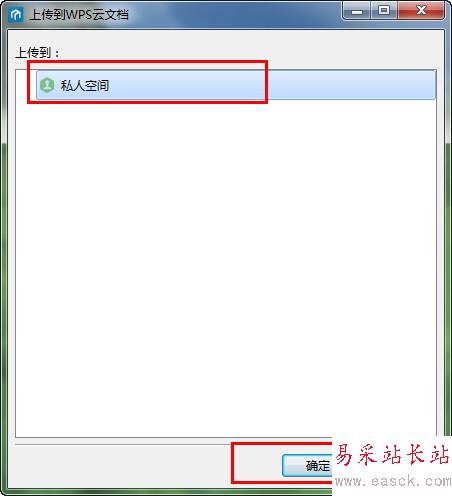 3、然后點(diǎn)擊私人空間,再選擇確定。我們就可以看到它瞬間就上傳成功了