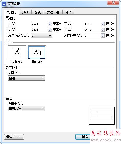 2、頁邊距==方向===點擊“橫向”或者“縱向”大家看著需要來