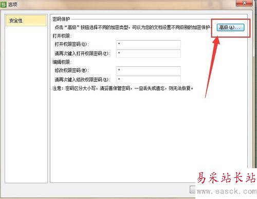 6、點(diǎn)擊“高級(jí)”進(jìn)入加密高級(jí)模式選擇不同的加密方式,并“確定”;