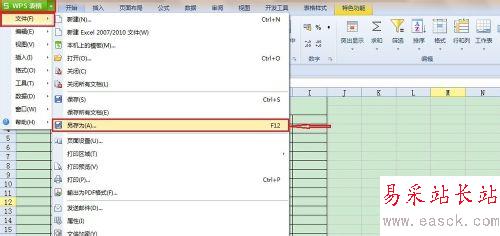 2、或者從單擊WPS表格按鈕“文件 -> 另存為”按鈕;