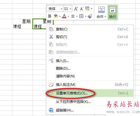 2、然后我們輸入文字,安裝alt+回車在單元格中換行,然后在上面的字(即星期)前打幾個空格
