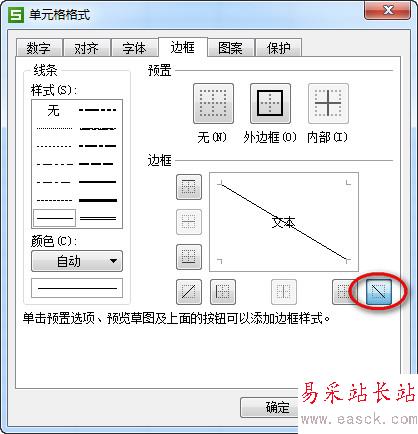 4、在彈出的對話框中選“邊框”點擊斜線按鈕。單擊確定