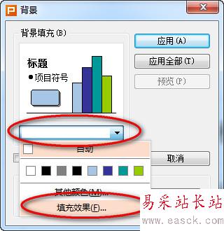 2、在彈出的背景對話框中選擇“背景填充”中的下拉選擇“填充效果”
