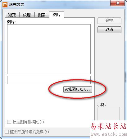 3、在填充效果中選擇“圖片”選項卡,點擊“選擇圖片”