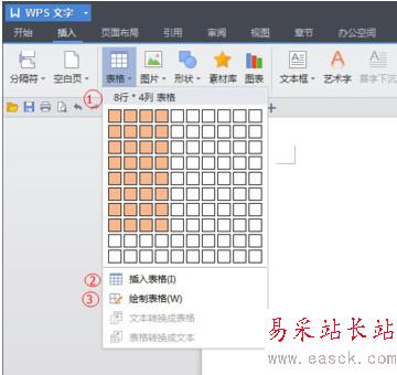 第二步:在菜單欄中點擊“表格”,在下面你將有三種方法制作表格。選擇一種方法畫出你想要制作的行和列。