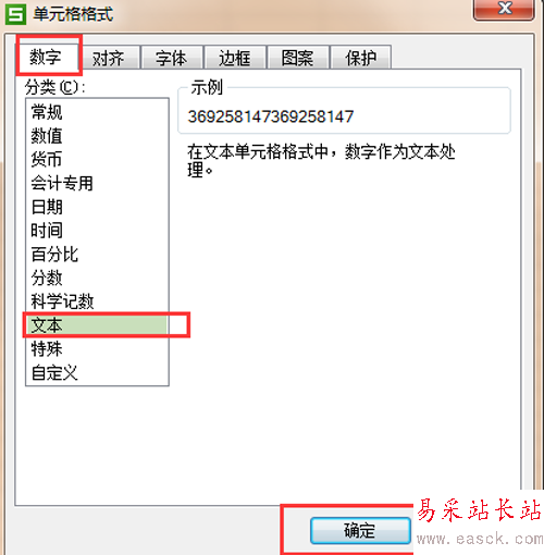 2、在單元格格式選項卡下點擊"數字",選擇"文本"就可以了